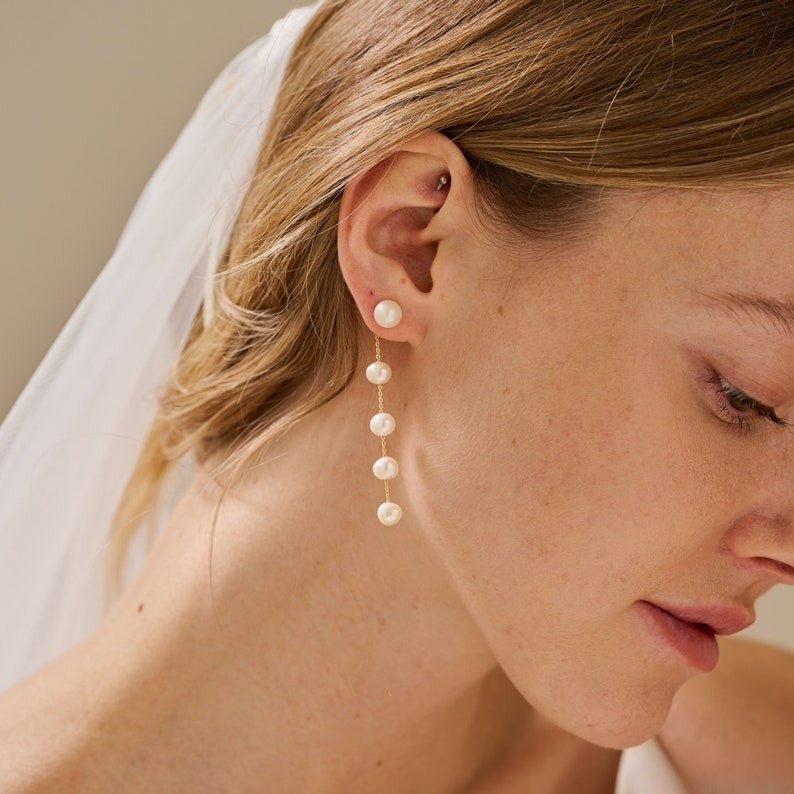 Pearl Drop Earrings, Gold Dangle Earrings, Freshwater Pearls, 5 Pearls Earrings, Long Pearls Earrings, Bridesmaid Gift for Her, Wedding Gift