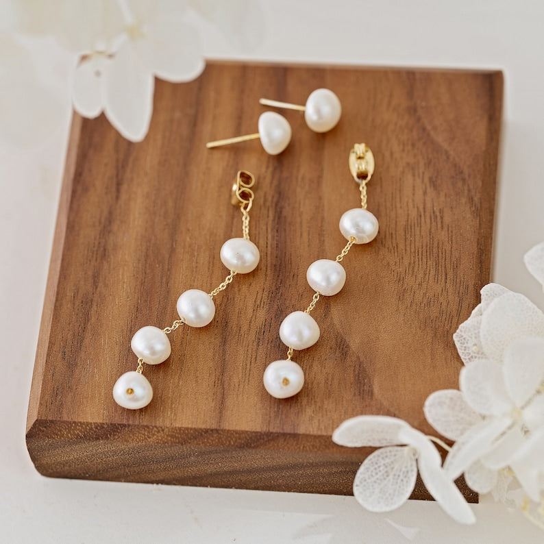 UNIQUE dainty natural pearls design, Beautiful Wedding earrings, Wear it either for everyday use or for special occasions.